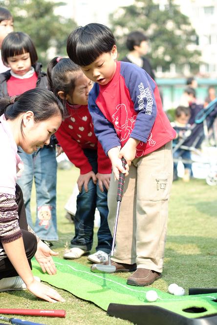 讓寶寶和家長(zhǎng)們都體會(huì)到了親子配合的樂(lè)趣;而高爾夫 讓寶寶和家長(zhǎng)們體會(huì)到了集中的意義;而小蝌蚪找 媽媽讓寶寶們對(duì)父母的認(rèn)識(shí)更進(jìn)一步。由于場(chǎng)地和時(shí)