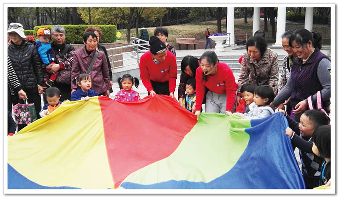 “斗?!庇螒蛘介_始,不僅寶寶們樂開了花,家長們也笑開了顏。