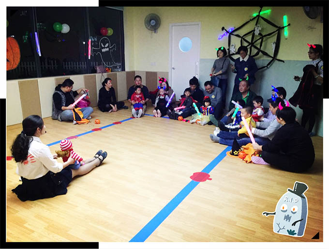 瞧,在今晚的主持人----喪尸姐姐的帶領(lǐng)下,寶貝們分別坐到了家長(zhǎng)的腿上,開(kāi)始進(jìn)行膝上彈樂(lè)的熱身活動(dòng)啦。