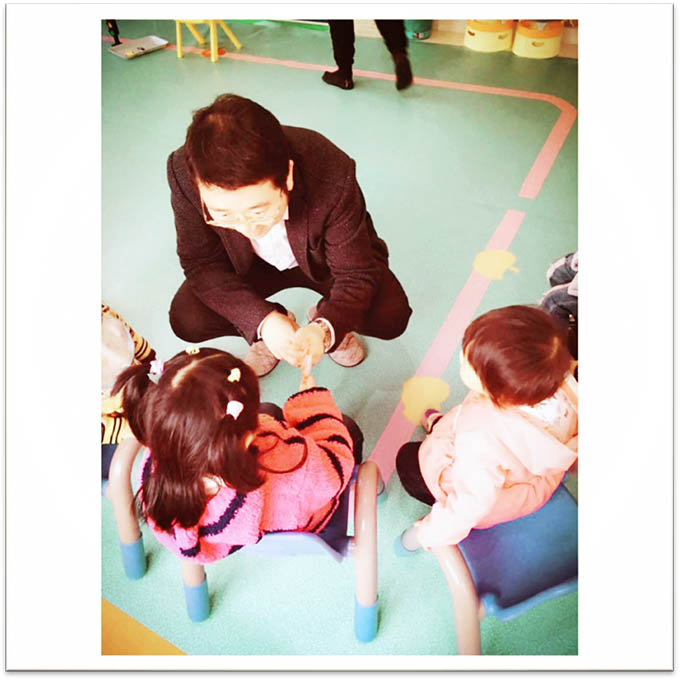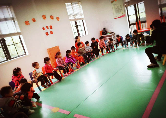 快看,小朋友們已經(jīng)坐在小板凳上等待著”爸爸”的到來(lái)。