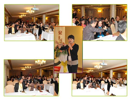 游戲互動現(xiàn)場,嬰智貝佳CEO鄭春芳、新愛嬰總裁周漢民、新世界教育集團副總裁許經(jīng)、炫動傳播副總經(jīng)理包翊敏、新聞晨報發(fā)行總監(jiān)翁韜、卡通先生影業(yè)CEO王磊、明大投資副總裁曾銘、新東方少兒部張俊萍主任、哈哈恒育副總經(jīng)理楊云等近百位教育界、嬰童界以及銀行、房地產(chǎn)、汽車等領(lǐng)域的企業(yè)高層,被引導(dǎo)參與到朱蓉娟老師的親子游戲互動中來,并樂在其中,同時給予嬰智貝佳的親子培訓(xùn)師朱蓉娟高度的肯定和期許。