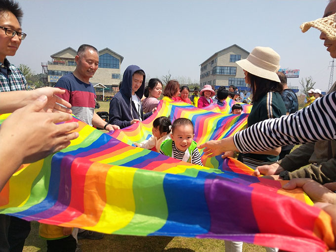 快來看哪,家長們一起合力搭起了“空中彩虹橋”,寶貝們都非常勇敢的向前爬行。